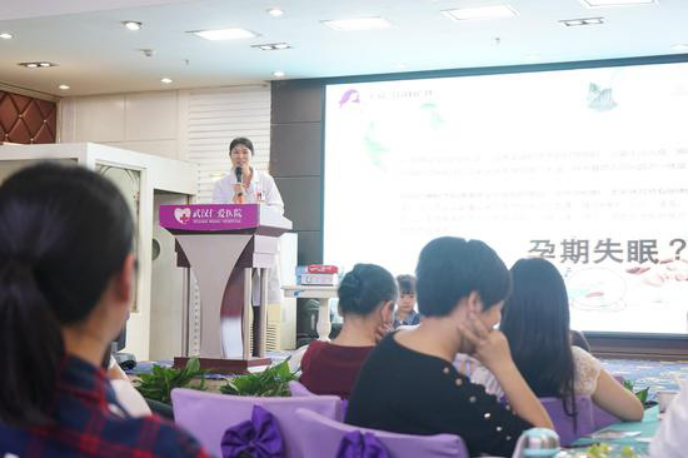 武漢仁愛醫(yī)院婦產(chǎn)科醫(yī)師給現(xiàn)場孕婦講解孕期睡眠小知識