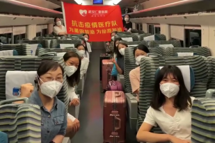 預(yù)計(jì)此次支援工作將持續(xù)多日,武漢仁愛醫(yī)院多個(gè)職能科室工作人員為出征同事準(zhǔn)備并打包好了防護(hù)服、醫(yī)療物資等抗疫物品,同時(shí)協(xié)助完成車票搶票事宜。經(jīng)過短短3小時(shí)緊張有序準(zhǔn)備,9月12日當(dāng)晚9點(diǎn)左右,12名醫(yī)務(wù)人員組成的抗疫“精銳部隊(duì)”,在樂學(xué)軍帶領(lǐng)下緊急出征福建省莆田市仙游縣開展抗疫工作。