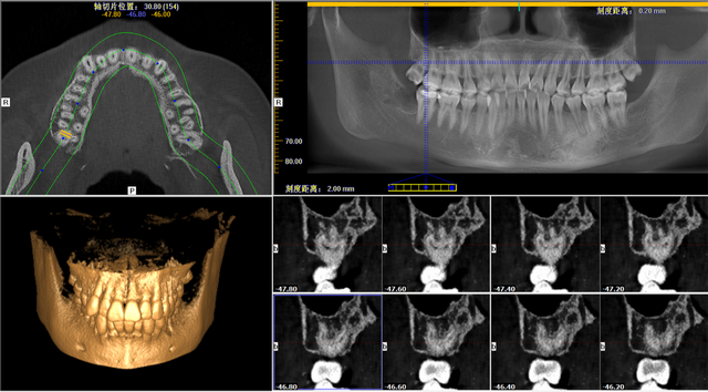 拔牙之前,傅呂通過口腔CT,告知明女士右邊上面智齒爛的很深,需盡快拔除。不僅如此,口腔CT還提示明女士該智齒有四個又彎又細的牙根,牙根離上頜竇非常近,斷根及斷根掉落上頜竇的風(fēng)險較大,完整拔出來難度很大。