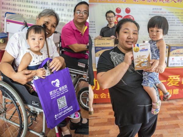 9月2日,武漢仁愛醫(yī)院“奶粉愛心捐贈車”再次出發(fā),來到豐美社區(qū),捐贈地點是位于武漢市硚口區(qū)長風大道長風路35號華生漢口城市廣場的太陽之家互助中心。據(jù)了解,豐美社區(qū)5400戶居民其中廉租房3400戶、公租房800戶、安置房1200戶,該地區(qū)是武漢最大的公租房社區(qū),是武漢困難家庭集中生活區(qū)。早早等待在大廳的居民們臉上充滿了期待與感激。這次領取奶粉的同樣有很多殘疾人家庭。身患腿疾的李奶奶坐著輪椅抱著自己可愛的孫女跟我們聊天,我們問她為什么這么早就過來了,李奶奶激動的對我們說:“我的孫女就是在仁愛醫(yī)院出生的啊!聽說你們要來豐美,我老早就在這里等了,只要能讓孫女吃上好奶粉,再苦我也愿意!”