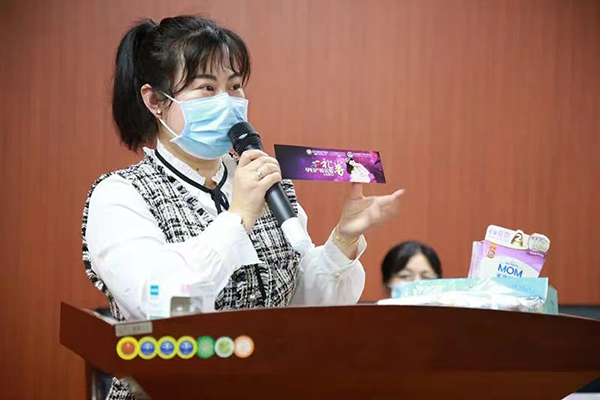 儀式現(xiàn)場,“帶娃能手訓(xùn)練營”開營,“2020年洪山好人”、“洪山區(qū)抗擊新冠疫情優(yōu)秀護士”、武漢真愛婦產(chǎn)醫(yī)院月子中心總護士長孫木英帶來了新生兒護理實操課,指導(dǎo)如何正確抱寶寶,如何給新生兒沐浴、撫觸、按摩,如何護理臍帶、換紙尿褲、打包被,現(xiàn)場不少孕媽躍躍欲試提前“上崗”,來自金地西岸故事小區(qū)的孕婦楊女士和媽媽上臺進行了實操演練。該院婦產(chǎn)科主任醫(yī)師張純進行了“兩癌”篩查健康講座。