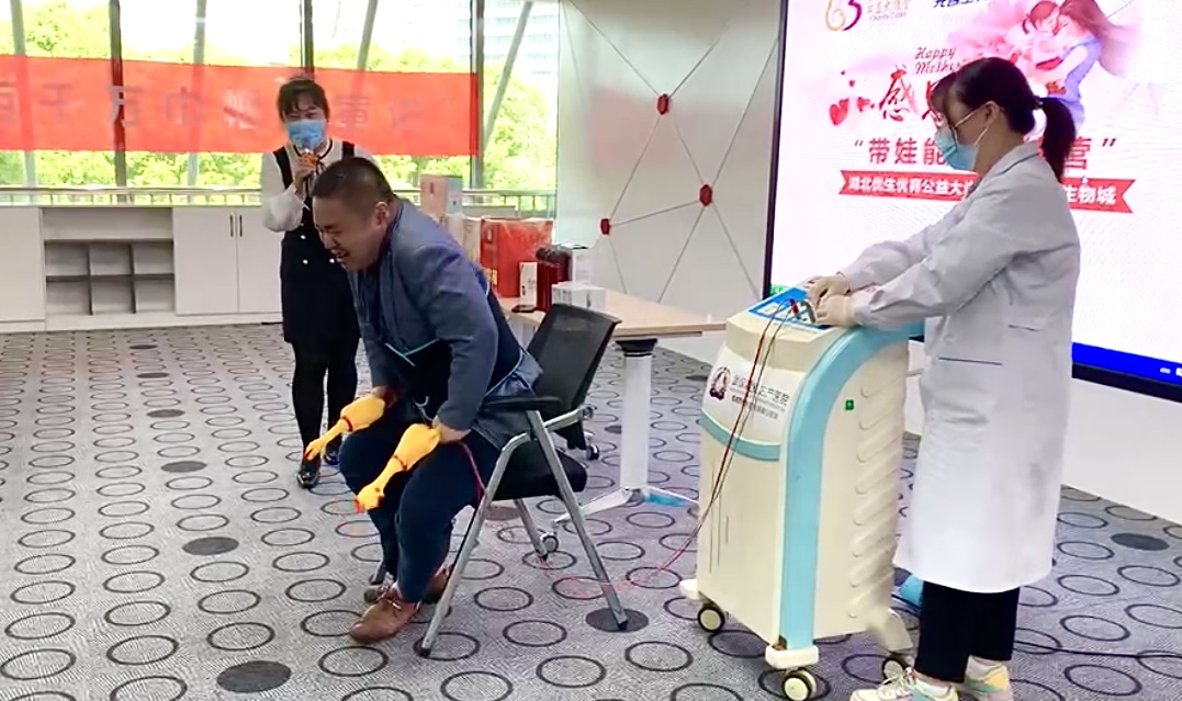 而“分娩吧爸爸”——分娩陣痛大挑戰(zhàn),則燃爆全場(chǎng),掀起了活動(dòng)高潮。男員工在臺(tái)上嗷嗷大叫,女員工在臺(tái)下哈哈大笑?;顒?dòng)原理是通過電脈沖對(duì)人體進(jìn)行電刺激,來模擬產(chǎn)婦分娩的疼痛感,疼痛共分10 級(jí),指數(shù)逐級(jí)遞增。“哎呀……受不了啦!”“6級(jí),停!停!停!……”從參加體驗(yàn)?zāi)袉T工的“表情包”,可以想象出生孩子大概是這樣的:痛不欲生、撕心裂肺、大喊大叫、大汗淋漓……體驗(yàn)者感慨,做母親太不容易了,要好好工作,好好愛家人。