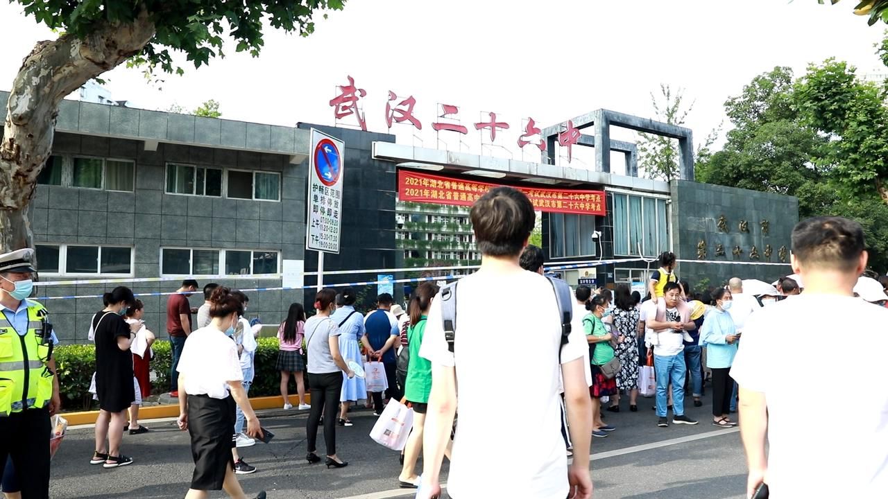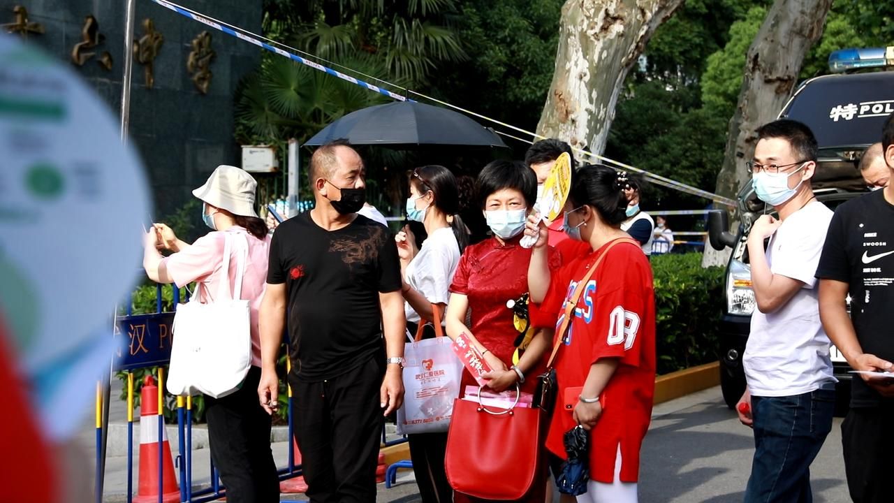 硚口區(qū)二十六中考點(diǎn)外等候的家長(zhǎng)們