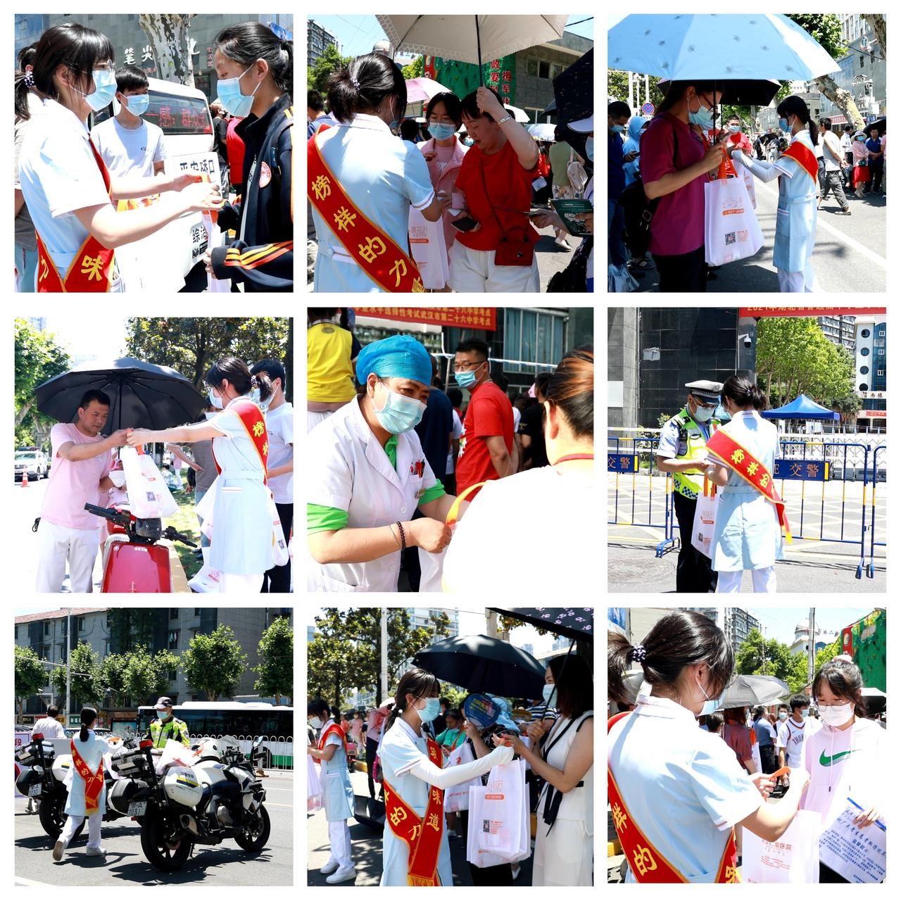 武漢仁愛(ài)醫(yī)院工作人員為考場(chǎng)外家長(zhǎng)、警察及環(huán)衛(wèi)工人送清涼