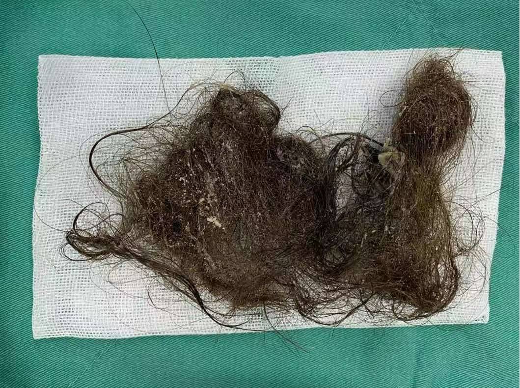 日前,湖北新洲的胡女士(化名),在當?shù)蒯t(yī)院產后復查B超中,發(fā)現(xiàn)體內長了腫瘤,后在武漢仁愛醫(yī)院手術中發(fā)現(xiàn),其瘤體重達5斤,令人吃驚的是,這個瘤體里面已長出完整的人的頭發(fā)。