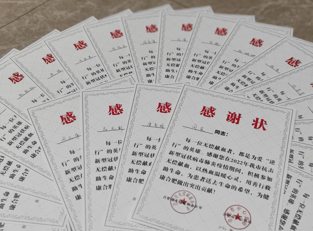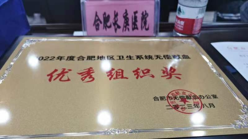 為響應(yīng)合肥市血站號(hào)召,進(jìn)一步推動(dòng)無償獻(xiàn)血工作持續(xù)健康發(fā)展,確保血液供應(yīng)安全保障能力,保護(hù)患者生命安全,合肥長庚醫(yī)院舉辦過多次無償獻(xiàn)血活動(dòng),2023年八月,我院榮獲2022年度合肥地區(qū)衛(wèi)生系統(tǒng)無償獻(xiàn)血“優(yōu)秀組織獎(jiǎng)”。