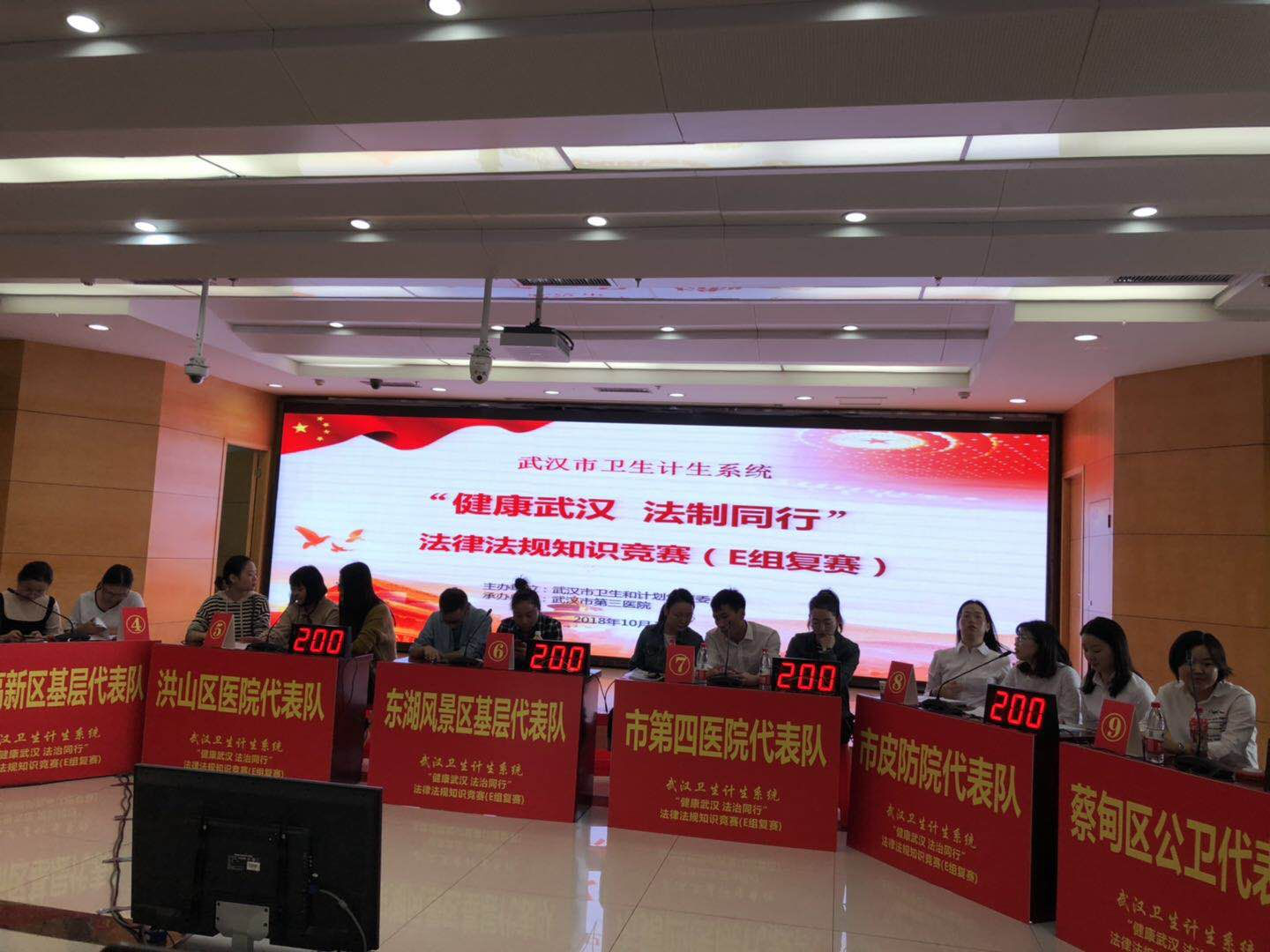 2018年10月10日,武漢真愛醫(yī)院作為洪山區(qū)醫(yī)院代表,參加了由武漢市衛(wèi)計委組織的普法知識競賽復賽。院領導王建文帶領我院選手參加。